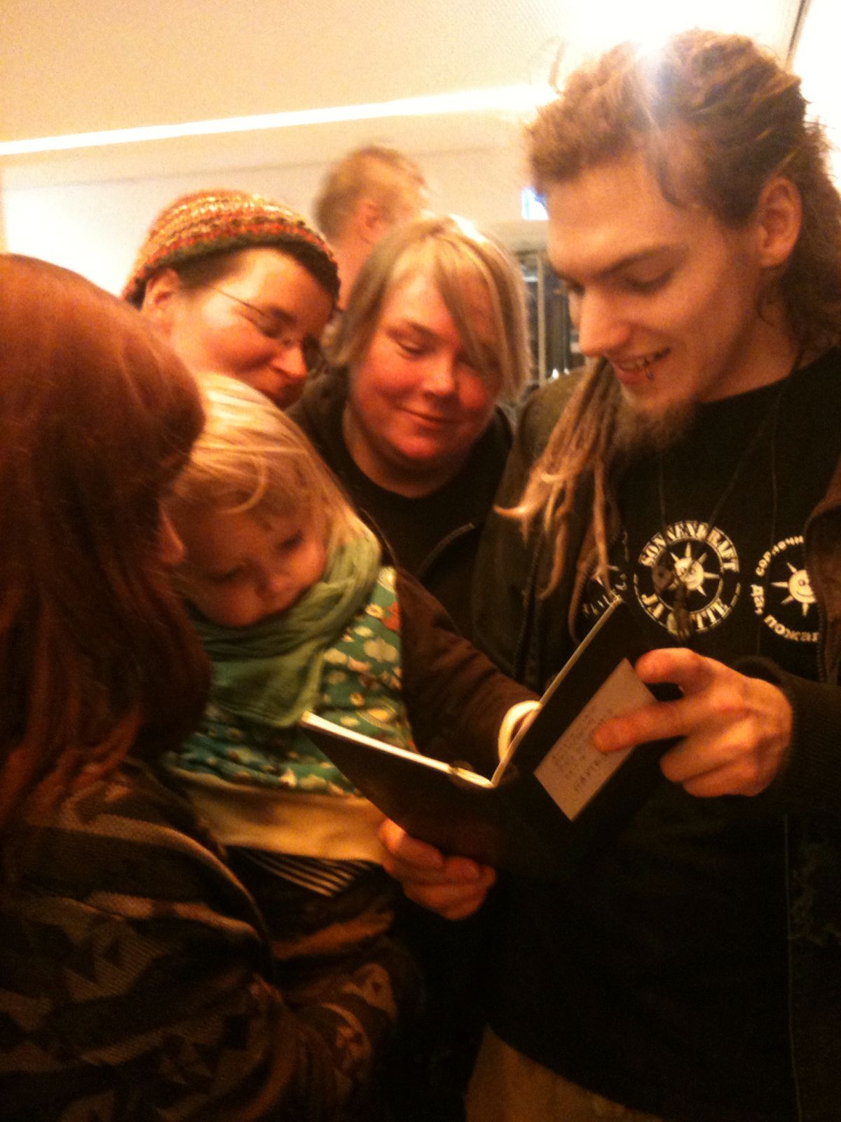 Ich bin platt, einerseits durch die ganzen Vorbereitungen und die Anspannung, die jetzt abfällt, aber auch weil es circa 80 Leute bei der Ausstellungseröffnung waren!! Danke für die ganze Unterstützung von allen Seiten auch in handwerklicher und technischer Hinsicht! Und an meine Schwester für dieses schöne Foto!