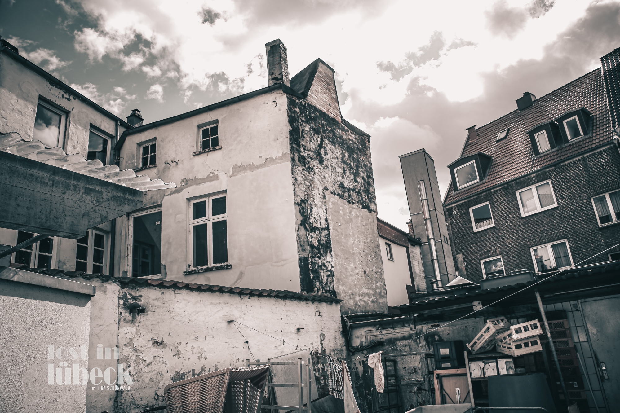 Das Bild mit dem Namen: Die Hinterhofsängerin, fotografiert am 11.04.2017 in der Krähenstraße 25-27 ,23552 Lübeck. Für den genauen Standpunkt hier die Koordinaten: 53.8645131639547, 10.692485823583752