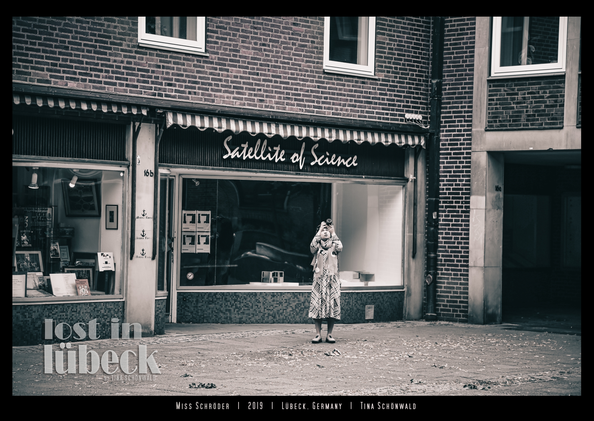 Das Bild mit dem Namen: Miss Schroeder, fotografiert am 13.08.2019 am Markt 16A, 23552 Lübeck. Für den genauen Standpunkt hier die Koordinaten: 53.86727762906364, 10.684869708530407